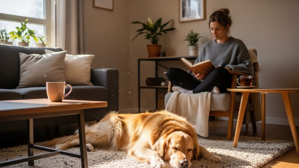 犬は本来、群れで生活する動物ですが、四六時中ベタベタと体を密着させているわけではありません。信頼し合っている群れの仲間たちは、**「同じ空間にいるけれど、互いに干渉しない時間」**を共有しています。 「無言でもそばにいてくれる」だけでいいのです。飼い主がスマホを見ていたり、家事をしていたりする時、足元や少し離れた場所で犬が寝ている。これこそが、究極の信頼の証です。「構われなくても、見捨てられることはない」という絶対的な自信があるからこそ、彼らは一人でくつろげるのです。